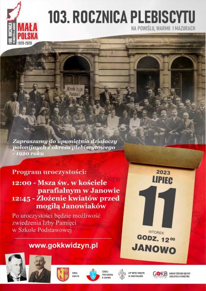 Msza święta odprawiona 11 lipca o godz. 12.00 w kościele parafialnym pod wezwaniem Jana Chrzciciela w Janowie rozpocznie uroczystości związane ze 103 rocznicą plebiscytu na Powiślu, Warmii i Mazurach.