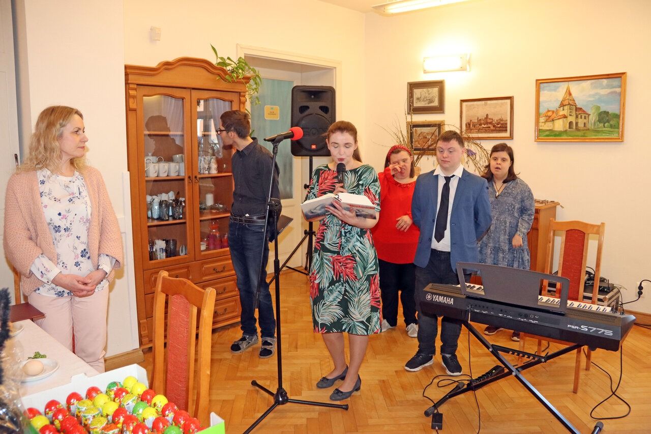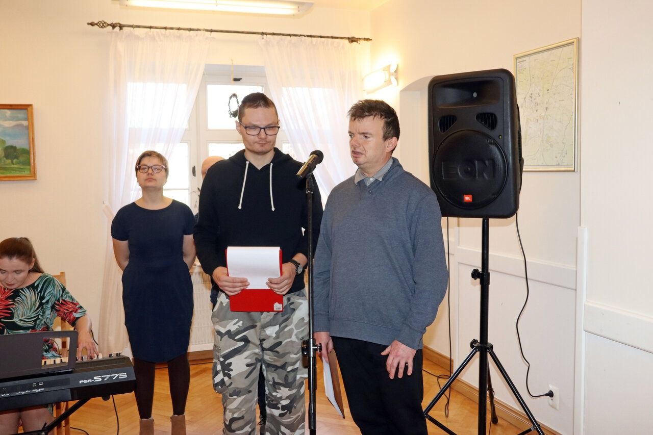 Gości powitała Anna Kowalska, kierownik Warsztatu Terapii Zajęciowej w Górkach. Podczas spotkania w świąteczny nastrój wprowadził wszystkich krótki występ zespołu uczestników warsztatu, którzy na co dzień biorą udział w zajęciach prowadzonych w pracowni artystycznej. W rehabilitacji zawodowej i społecznej, prowadzonej w warsztacie, uczestniczy obecnie 47 niepełnosprawnych mieszkańców powiatu kwidzyńskiego.