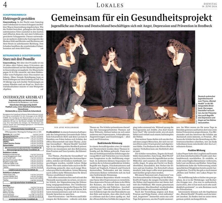 Podczas podsumowania projektu w Niemczech stawili się mieszkańcy Osterholz Scharmbeck, nauczyciele IGS, a nawet lokalna prasa.