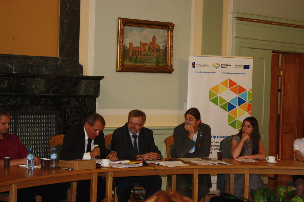 W programie spotkania znalazły się tematy dotyczące : aktualnej sytuacji w projekcie Decydujmy Razem, praktyka projektu młodzieżowego ? Zespół Szkół Ponadgimnazjalnych nr 1, budowanie partnerstw w obszarze zrównoważonego rozwoju z wykorzystaniem narzędzi partycypacji ? doświadczenia subregionu Naszyjnik Północy, przedmiotowość dla rozwoju ? wnioski z IV Pomorskiego Kongresu Obywatelskiego, narzędzia partycypacji w nowelizacji ustawy o pożytku publicznym i o wolontariacie oraz uruchamianie mechanizmów partycypacji na poziomie krajowym na przykładzie prac nad Ustawą o wzmocnieniu udziału mieszkańców w samorządzie terytorialnym, współdziałaniu gmin, powiatów i województw. Powyższe tematy przedstawili : Henryk Wujec i Marcin Dadel ? Doradcy Prezydenta Rzeczpospolitej Polskiej, Ewa Romanow-Pękal ? Prezes Zarządu Stowarzyszenia Eko-Inicjatywa w Kwidzynie, Marek Romaniec ? Prezes Zarządu Fundacji Naszyjnik Północy, Marta Gutmańska i Dominika Szaciłło ? wolontariuszki z Zespołu Szkół Ponadgimnazjalnych nr 1 w Kwidzynie, Dominik Sudoł ? Animator Subregionu Nadwiślańskiego, Członek Zarządu Stowarzyszenia Eko-Inicjatywa. Ze strony powiatu kwidzyńskiego w spotkaniu uczestniczyli : Włodzimierz Dawidowski ? Członek Zarządu Powiatu i Robert Holiński ? Wydział Rozwoju Powiatu i Polityki Społecznej Starostwa Powiatowego.