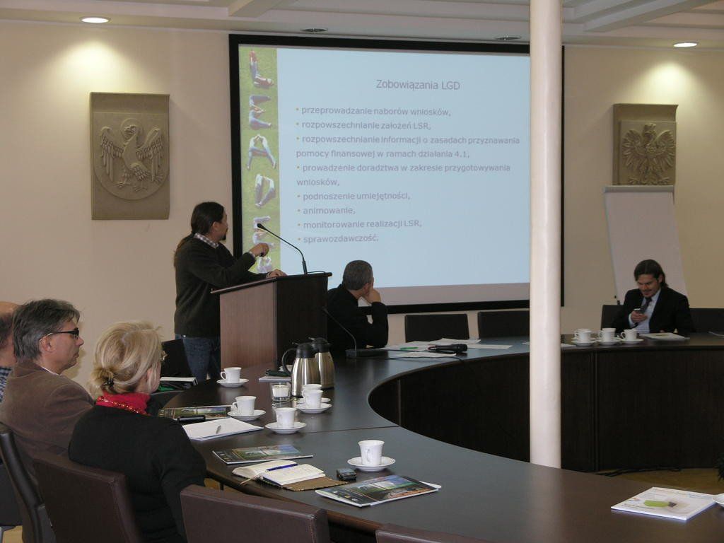 Mirosław Plakwicz ze Stowarzyszenia Powiślańska Lokalna Grupa Działania w Górkach przedstawił temat Rola i działania prowadzone przez Powiślańską Lokalną Grupę Działania na terenie powiatu kwidzyńskiego. Zapoznał zebranych z istotą lokalnej grupy działania, przedstawił : strukturę stowarzyszenia oraz jego specyfikę, LGD w województwie pomorskim, zobowiązania LGD, budżet PLGD, informację o naborze wniosków oraz innych działaniach podejmowanych przez PLGD na terenie powiatu kwidzyńskiego.