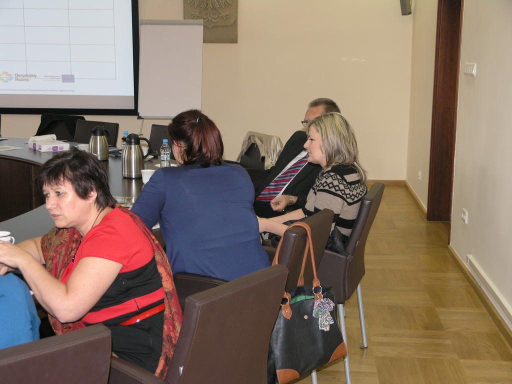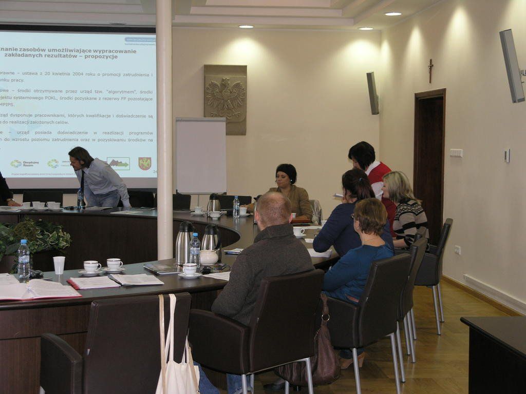 Na tym zakończyła się pierwsza część spotkania. Po przerwie odbyła się część warsztatowa, którą poprowadziła Elżbieta Singer ? ekspert w projekcie Decydujmy Razem. Przedmiotem pracy w części warsztatowej był wstępny projekt Powiatowego programu przeciwdziałania bezrobociu oraz aktywizacji lokalnego rynku pracy.
