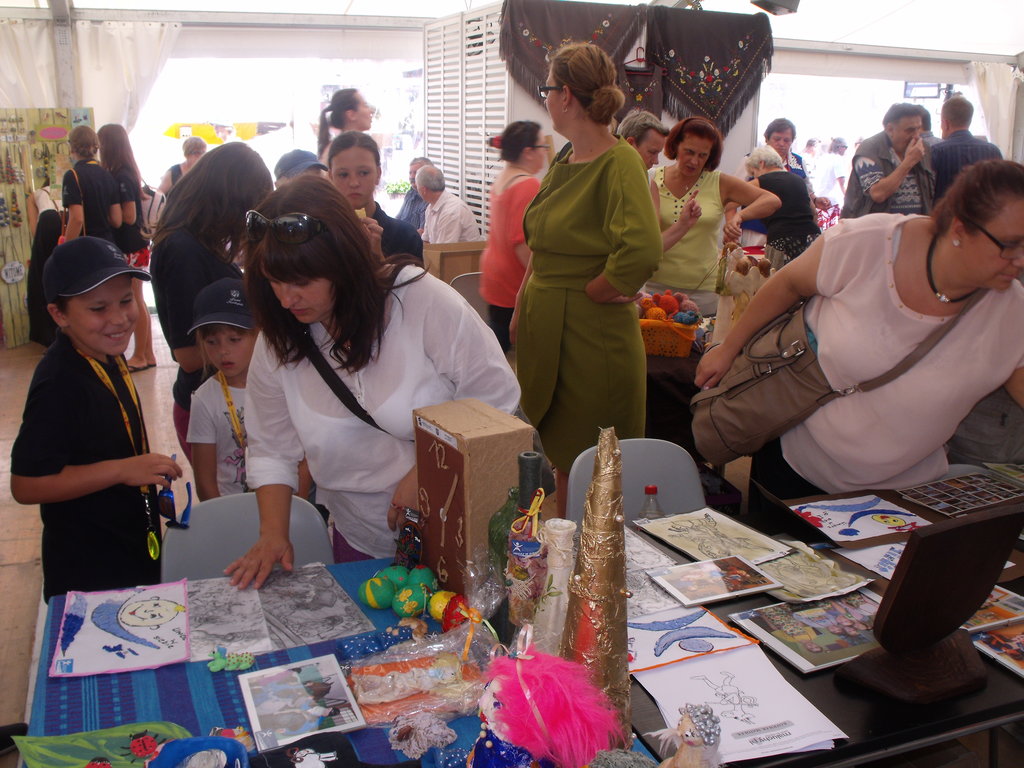 Oprócz materiałów promujących powiat kwidzyński na stołach umieszczono wiele różnorodnych prac, przygotowanych przez uczestników projektu, tj. prace plastyczne, z masy solnej, wyroby z gliny itp.
