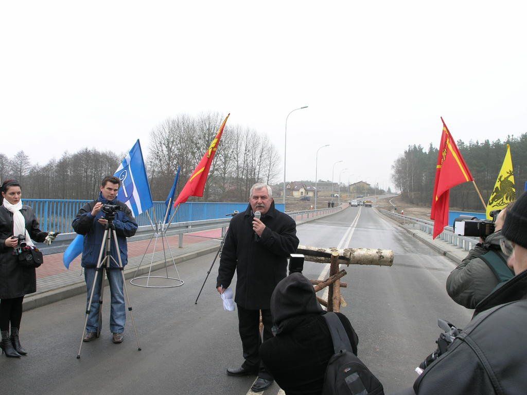 W dniu 4 grudnia 2009 r. na nowo wybudowanym moście przez Liwę na ul. Młynarskiej odbyła się uroczystość otwarcia inwestycji. W uroczystości uczestniczyli przedstawiciele samorządów z terenu powiatu, wykonawców, inspektorów nadzoru, służb i inspekcji, przedsiębiorcy, osoby zaangażowane w realizację inwestycji. Uroczystość otworzył Andrzej Fortuna ? Wicestarosta Kwidzyński, który przedstawił zebranym gościom krótką historię inwestycji oraz podstawowe dane techniczne i finansowe. Następnie głos zabrali : Leszek Czarnobaj ? Wicemarszałek Województwa Pomorskiego, Jerzy Godzik ? Starosta Kwidzyński, Andrzej Krzysztofiak ? Burmistrz Miasta Kwidzyna, Jerzy Kozdroń ? Poseł na Sejm RP. Podziękowali wszystkim, którzy byli na przestrzeni ostatnich lat zaangażowani w realizację przedsięwzięcia. Odbyło się także tradycyjne otwarcie ? w tym wypadku jednak nie przecięcie wstęgi, a symbolicznej belki na moście. W dalszej części na Zamku w Kwidzynie odbyło się wręczenie podziękowań zaproszonym gościom.