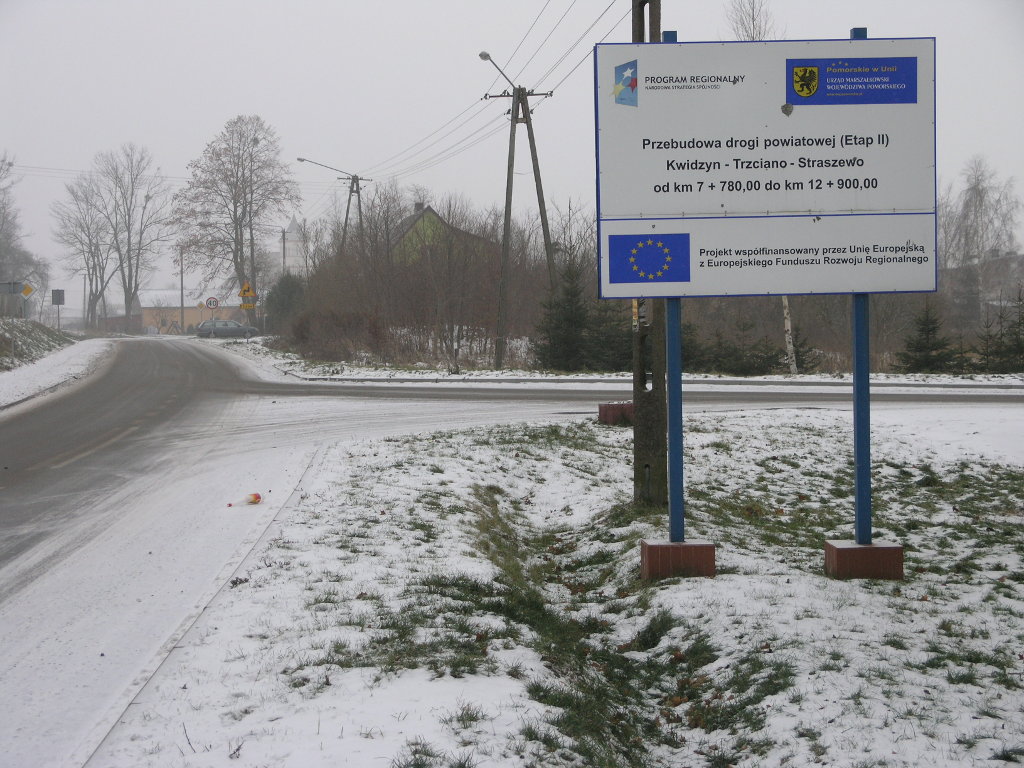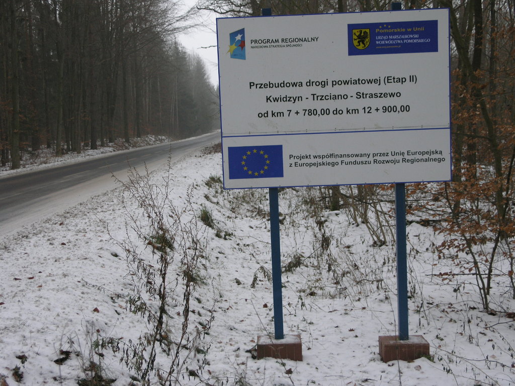 Inwestycja została zrealizowana w ramach projektu Przebudowa drogi powiatowej ( Etap II ) Kwidzyn?Trzciano-Straszewo od km 7 +780,00 do km 12+900,00, współfinansowanego przez Unię Europejską z Europejskiego Funduszu Rozwoju Regionalnego w ramach Regionalnego Programu Operacyjnego dla Województwa Pomorskiego na lata 2007-2013, Oś Priorytetowa 8 Lokalna infrastruktura podstawowa, Działanie 8.1 Lokalny potencjał rozwojowy, Poddziałanie 8.1.1 Lokalna infrastruktura drogowa.