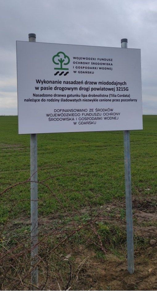 Powiat Kwidzyński, dzięki dofinansowaniu ze środków Wojewódzkiego Funduszu Ochrony Środowiska i Gospodarki Wodnej w Gdańsku, zrealizował zadanie zatytułowane „Wykonanie nasadzeń drzew miododajnych w pasie drogowym drogi powiatowej 3215G”.